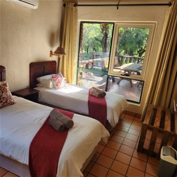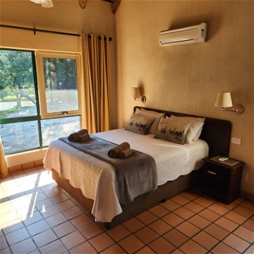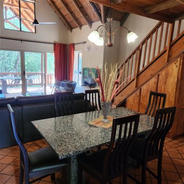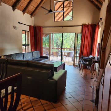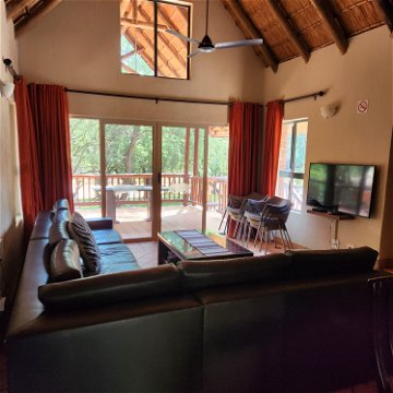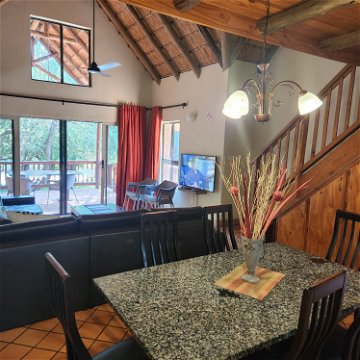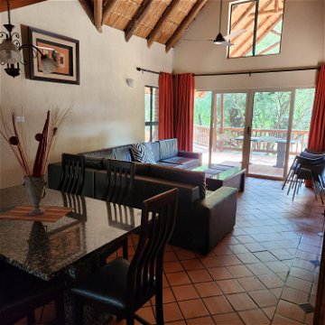 Relax on your patio undery tree and have a BBQ and sit around the boma and watch the Crocs and Hippos in the Olifants river. Our chalets have a open plan living, dining and fully equipped kitchen with 2xBedrooms and 2xBathrooms.